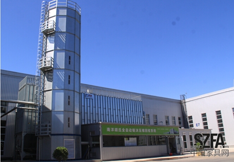 記者走訪過程中看到,南洋胡氏家具的工廠格局分布明晰,前期的鋸切加工車間設(shè)有空間除塵系統(tǒng),及鋸沫回收系統(tǒng),加工空間的木屑灰及剩余廢料會經(jīng)回收系統(tǒng)壓縮成餅狀,用于二次利用。后期涂裝車間,水淋除塵設(shè)備是家具生產(chǎn)出現(xiàn)污水的主要來源,南洋胡氏針對性的引進目前最先進的污水凈化循環(huán)系統(tǒng),真正實現(xiàn)了家具生產(chǎn)零排放。
