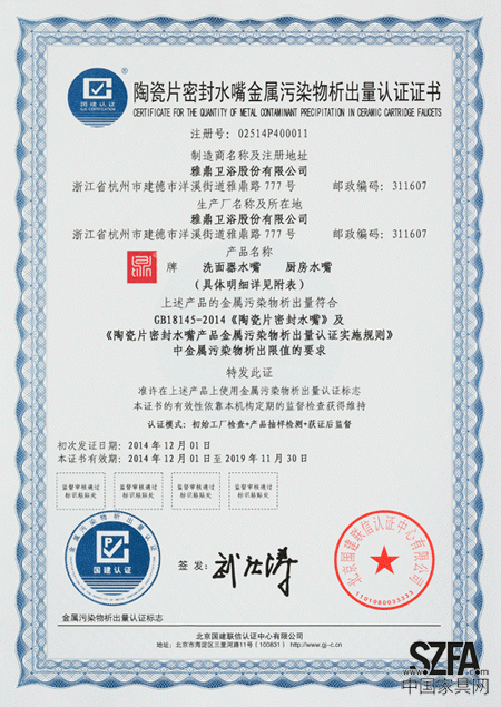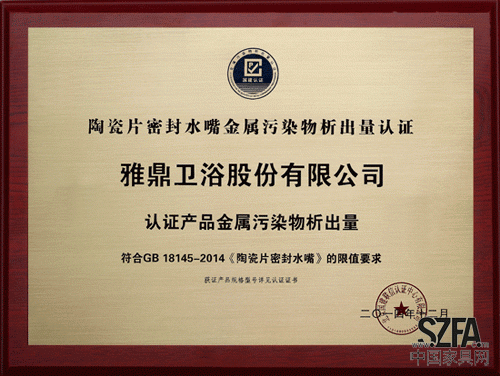 12月1日,嚴(yán)苛程度堪比美國的水龍頭新國標(biāo)GB18145-2014《陶瓷片密封水嘴》正式實(shí)施。在水龍頭新國標(biāo)執(zhí)行之日,首批通過“陶瓷片密封水嘴金屬污染物析出量”認(rèn)證的29家衛(wèi)浴企業(yè)光榮獲證,而一直堅(jiān)持高品質(zhì)的雅鼎衛(wèi)浴與樂家、科勒、TOTO等國際品牌一同成為首批獲證的衛(wèi)浴企業(yè)。對于水龍頭新國標(biāo)的實(shí)施,雅鼎衛(wèi)浴董事長俞光顯得尤為淡定,他表示:“我們都一直用高于新國標(biāo)的標(biāo)準(zhǔn)在把控產(chǎn)品質(zhì)量。”
