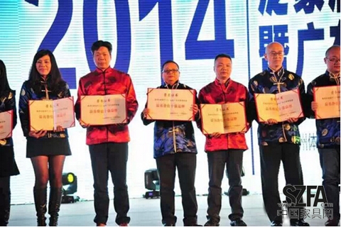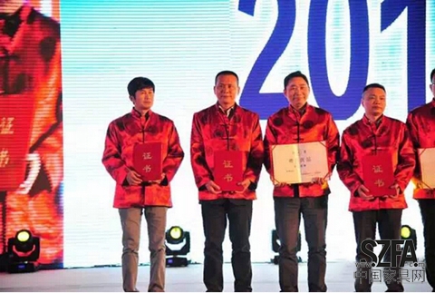 森堡家私董事長(zhǎng)郭向陽(yáng)(左二)上臺(tái)領(lǐng)獎(jiǎng)