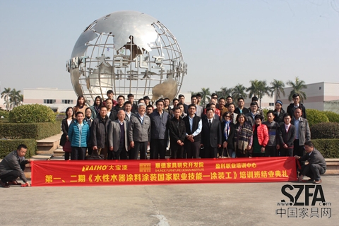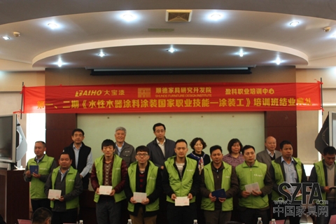 1月23日上午,順德家具研究開發(fā)院首期、二期水性木器涂料涂裝工培訓(xùn)班結(jié)業(yè)典禮在東莞大寶總部舉行。典禮活動(dòng)簡(jiǎn)樸而隆重,28名學(xué)員接過(guò)由國(guó)家勞動(dòng)和社會(huì)保障部頒發(fā)的中級(jí)工、高級(jí)工國(guó)家職業(yè)資格證書,這標(biāo)志著中國(guó)首批水性木器涂料涂裝技術(shù)工人的誕生。