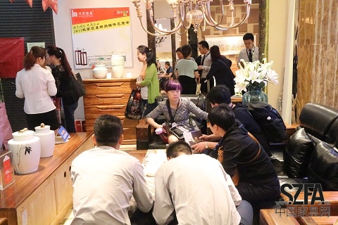 “烏金盛世”系列是雙李集團重金打造的全實木高端產(chǎn)品,是中式后現(xiàn)代的典范。產(chǎn)品線條流暢,器形渾厚大氣有張力,色彩深沉富有質(zhì)感。“烏金盛世”系列憑借著多種優(yōu)勢,一舉奪得深圳國際家具展評比的“質(zhì)量環(huán)保金獎”。種種有競爭力的賣點和雙李集團的整體實力,引起無數(shù)客商頓足,走進雙李家具展館,交流洽談合作事宜,一時間人氣爆滿。據(jù)初步統(tǒng)計,開展第一天,簽定訂單67份,已交定金者23家,招商成績極佳。