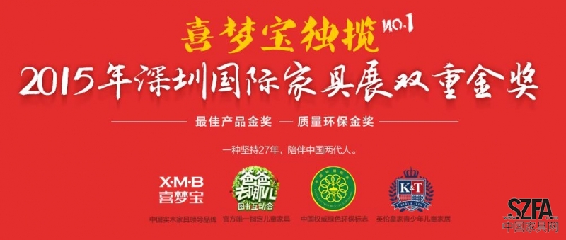 2015年3月22日,第30屆深圳國際家具展圓滿落幕。此次展會吸引了喜夢寶在內(nèi)的數(shù)千家海內(nèi)外知名家具品牌商,盛況空前。在本次展會上,喜夢寶攜同屬廈門優(yōu)客居品牌管理有限公司旗下品牌的KIDS&TEEN高端青少年兒童家具首次亮相, 在展會新品設(shè)計和質(zhì)量評比中榮獲“金汐獎”---最佳產(chǎn)品金獎(少年兒童系列唯一金獎)、質(zhì)量環(huán)保金獎雙項金獎,載譽而歸成為名副其實的雙料王!