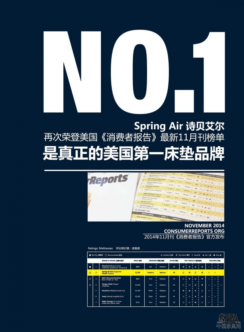 Spring Air詩貝艾爾因極致享受生活而誕生。以匯聚全球頂級睡眠資源,追求精致的細(xì)節(jié)與工藝為設(shè)計原點,為全球顯赫峰層打造極致完美生活為使命,成就其奢華床墊品牌的領(lǐng)導(dǎo)者地位。2014年11月,Spring Air詩貝艾爾再次榮登美國《消費者報告》榜單,是真正的美國第一床墊品牌。