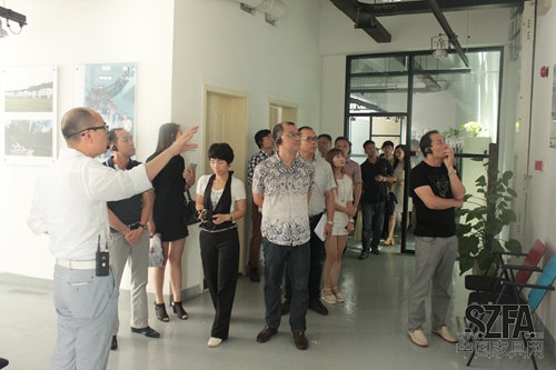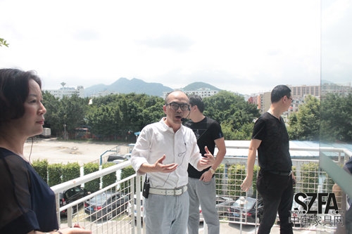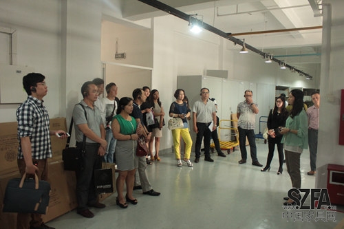 深圳市家具行業(yè)協(xié)會(huì)常務(wù)副會(huì)長關(guān)永康帶領(lǐng)嘉賓參觀大樓并介紹