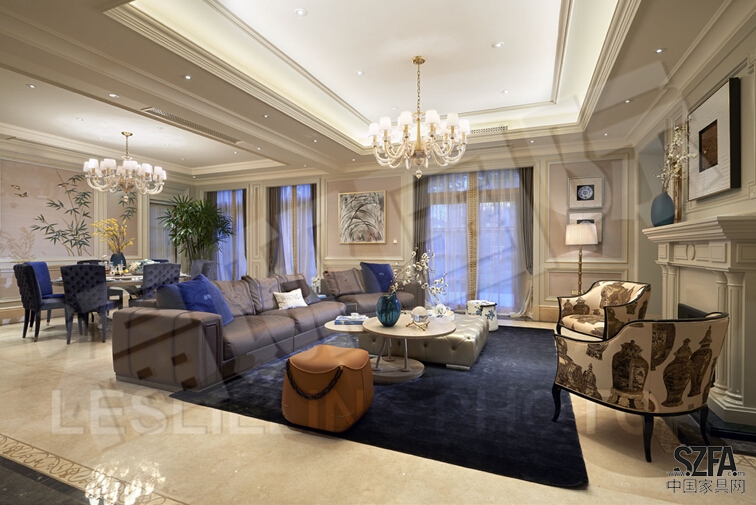 本次綠城桃花源樣板房的軟裝設(shè)計(jì)以高雅奢華的法式風(fēng)格為基調(diào),融入儒雅禪韻的東方元素。在風(fēng)格的把握上,福邸保留了之前樣板房所呈現(xiàn)的奢華感,通過對木飾面、墻紙等產(chǎn)品的選擇,減輕了空間的厚重感,取而代之的是一種優(yōu)雅而時(shí)尚的環(huán)境氣氛。