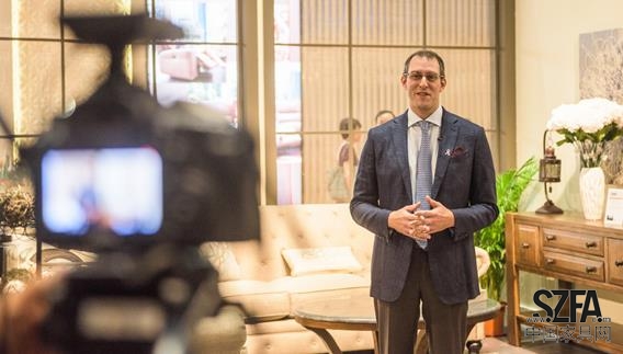 Paul Dotta 先生為各大主流媒體介紹Ashley愛室麗家居展位