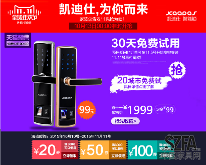 “雙11”臨近,電商年終大戰(zhàn)即將打響。在這個“雙11”,電商們拼規(guī)模、拼創(chuàng)意、拼促銷,無所不用其極矣。但是,無論電商“花樣”如何變換,消費者要的只是“實惠”。真正實惠的產(chǎn)品,才能“勝者為王”。“預(yù)付99元免費試用30天”,云安防智能鎖Alock讓你實惠到家。