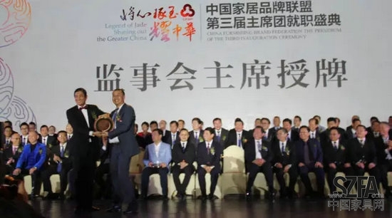 ▲中國家居品牌聯(lián)盟監(jiān)事會主席授牌![]()