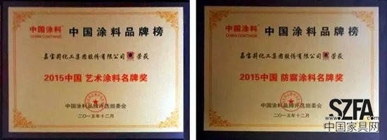 (左)中國木器涂料名牌獎(jiǎng)(右)中國建筑涂料名牌獎(jiǎng)