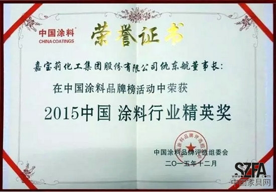 12月18日,2015中國水性工業(yè)涂料發(fā)展研討會在京召開。會議旨在順應(yīng)國家系列環(huán)保法規(guī),加快涂料行業(yè)的轉(zhuǎn)型升級。會議同期還舉辦了2015中國涂料品牌榜頒獎(jiǎng)活動,嘉寶莉是獲獎(jiǎng)最多的企業(yè)之一,先后被授予為2015“中國藝術(shù)涂料名牌獎(jiǎng)”、“中國建筑涂料名牌獎(jiǎng)”、“中國木器涂料名牌獎(jiǎng)”、“中國防腐涂料名牌獎(jiǎng)”,嘉寶莉董事長仇東航還榮獲了“2015中國涂料行業(yè)精英獎(jiǎng)”。