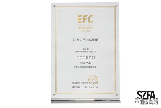 格調(diào)家私榮獲綠色優(yōu)品“初審入圍資格證書”