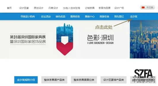 ▲ 深圳國際家具展官方網站金汐獎頁面