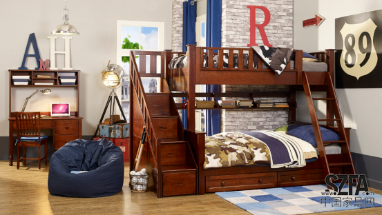 在展示區(qū)域內(nèi),產(chǎn)品實物也同樣給消費者以十足的視覺享受。每一款家具都以原生實木為基調(diào),外觀的每一個紋路線條都以獨一無二的存在來展現(xiàn)美感與舒適。喜夢寶堅持整套家具通體采用通過FSC森林體系認(rèn)證的進(jìn)口南美松木進(jìn)行加工制作,運用昂貴的真空運輸技術(shù)來確保木材從原產(chǎn)地到加工地的濕度與質(zhì)感不變。同時,喜夢寶運用高檔品牌的可食用UV環(huán)保漆來進(jìn)行手工涂刷外層,使得家具得到多方位保護(hù)的同時更加光澤柔潤。28年的成長過渡,喜夢寶不再是溫室中成長的孩子,通過更多設(shè)計師的精巧構(gòu)思,喜夢寶不僅在思路上找到新方向并針對兒童的心理變化,面對不同年齡層的兒童進(jìn)行針對性的功能設(shè)計。2012年喜夢寶為了滿足更多的市場需求,增加了產(chǎn)品種類與服務(wù),結(jié)合市場需求,研發(fā)設(shè)計高端青少年兒童家具品牌KIDS&TEEN英倫印象,在終端形成“兩個拳頭出擊”之勢:一個拳頭是原木色為主的喜夢寶兒童家具,另一邊則是多彩的英倫高端品牌KIDS&TEEN,更加擴(kuò)大了消費者的選擇廣度。