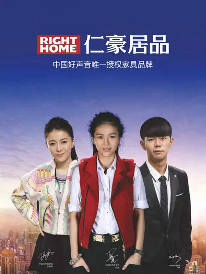 2014年,仁豪家具攜手“中國好聲音”戰(zhàn)略合作,開啟了品牌由行業(yè)向終端的轉(zhuǎn)型,依托仁豪家具終端渠道,借助“中國好聲音”的知名度,深化仁豪家具品牌在消費(fèi)者心中的形象,并在服務(wù)體系上把需求做強(qiáng),最終完成仁豪家具終端消費(fèi)者品牌的形象塑造。