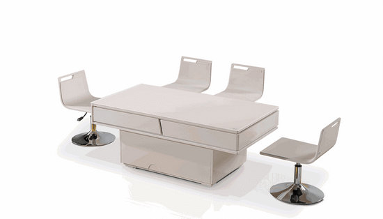得一家私將在深圳展上推出光電智能餐桌,以先進(jìn)的技術(shù)創(chuàng)造出具備智能功能的餐桌,革新家居餐客廳文化。其最大的亮點(diǎn)就在于臺(tái)面使用釉砂玻璃,可加裝光電智能升級(jí)包,一鍵觸動(dòng),電動(dòng)升降,升可當(dāng)餐桌烹飪做菜,降可作茶幾品茶溫酒會(huì)友,一桌兩用,自在舒適。