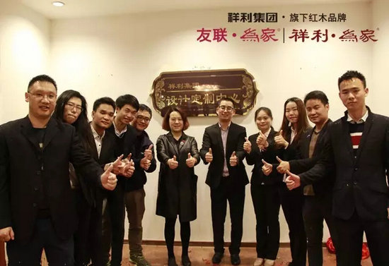 祥利集團設(shè)計定制中心成員在加盟商店內(nèi)留影