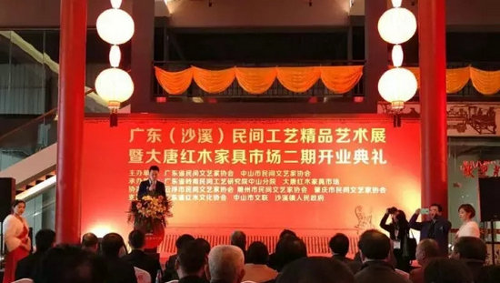 核心提示:3月14日,由廣東省民間文藝家協(xié)會、中山市民間文藝家協(xié)會主辦,廣東省嶺南民間工藝研究院中山分院、大唐紅木家具市場承辦的廣東(沙溪)民間工藝精品藝術(shù)展暨大唐紅木家具市場二期開業(yè)典禮盛大舉行。