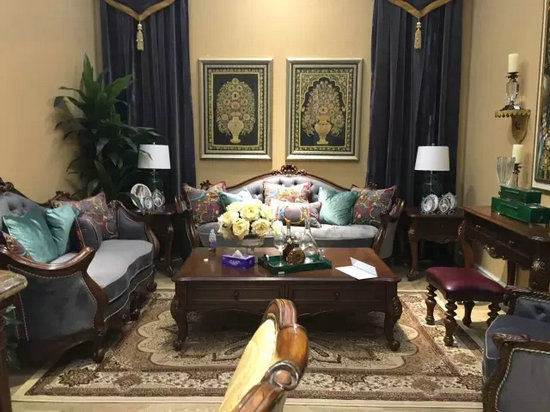現(xiàn)代實木向風格化挺進是近年實木板塊的主旋律,本屆東莞展的美式風格尤為突出。在這股風潮下,以美式為主體的風格化實木牢牢占據(jù)了實木家具的中端市場,新品輩出。它們沿用了現(xiàn)代實木的做法,圍繞一種主材(通常為白蠟木)首先去突出材料的體量感,在此基礎上簡化了歐美風格的流線造型框架,加之凝練的雕刻紋飾。在風格化實木板塊里,沙發(fā)和床屏軟包成了產(chǎn)品塑造賣點的必要之處,通常是拉扣和鉚釘結(jié)合、頭層牛皮和奢侈品元素布藝。另外我們注意到,很多企業(yè)已經(jīng)在美式實木產(chǎn)品上做出了進一步細分——簡約美式、休閑美式和時尚美式。