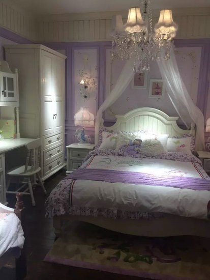 在產(chǎn)品風格上,本屆東莞展高端貴族兒童家具存在兩大主流風格:英倫風格和地中海風格。“英倫風格”借鑒了美式風格,但在包裝形態(tài)上傾向于“英倫”這種更適合兒童房的故事題材,代表品牌:創(chuàng)域·凱蒂絲(橡膠木),歐尚·美途(松木),錦發(fā)·英倫home(橡膠木),及恒大以桃花芯木為主材的全實木美式產(chǎn)品;“地中海風格”則是若干年前韓式風格的固化和延續(xù),通過增加色彩、空間氛圍營造來提升價值感,代表品牌:以松木為主材的全實木地中海風格,代表品牌:美萊屋,金富雅,以黃楊木為主材的板木結(jié)合地中海風格,代表品牌:恒大·至白小屋。