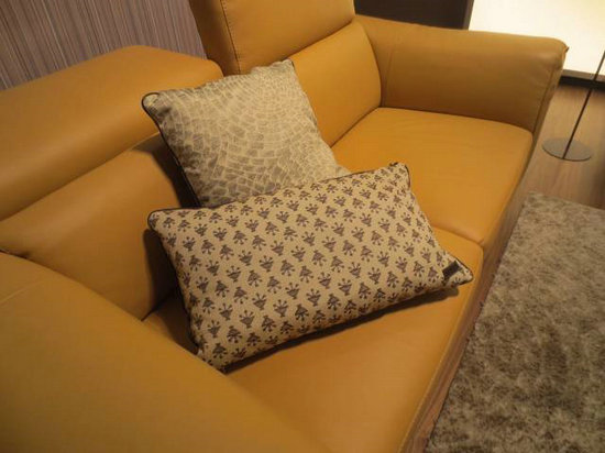 ▲2015米蘭展會Natuzzi旗下意迪森品牌宣稱所用牛皮為野外放養(yǎng)牛皮,故每一款皮都允許瑕疵存在。