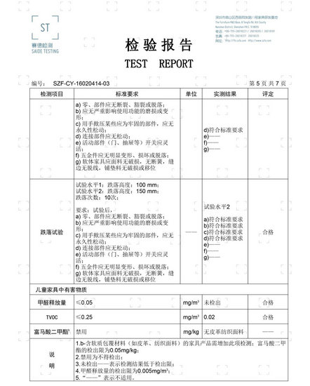 ②床頭柜:常規(guī)性能:力學(xué)安全性能;環(huán)保性能:兒童家具中整體甲醛釋放量、兒童家具整體總揮發(fā)性有機(jī)化合物。