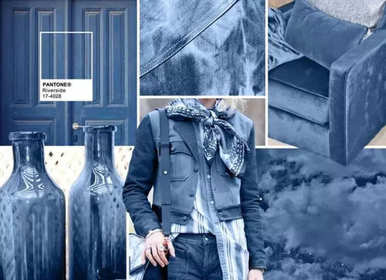▲生活方式引導(dǎo)者品牌Misura Emmed今年推出的情緒模板,是對潘通首推色河岸藍(lán)(Riverside)的精彩演繹。河岸藍(lán)(Riverside):是潘通一種新藍(lán)色,占據(jù)秋季最顯著位置,代表酷且平靜、強(qiáng)大又穩(wěn)定。傳達(dá)一種微妙的活力和高雅??雌饋碛悬c(diǎn)像牛仔的顏色。