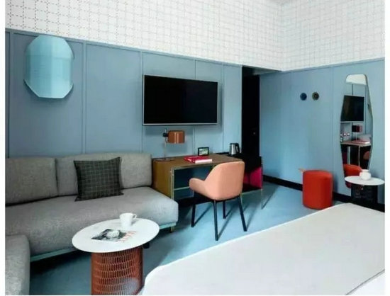 ▲酒店大堂及客房中的家具搭配也大量融入了年輕活力的色彩及造型,并將不少設計出彩的家具單品混搭,處處給人帶來驚喜。這些家具大多來自Cassina、Moroso等家具品牌大咖,其中有不少是全球著名建筑工業(yè)大師的經(jīng)典設計,更有不少是Patricia Urquiola本人的家具設計作品。