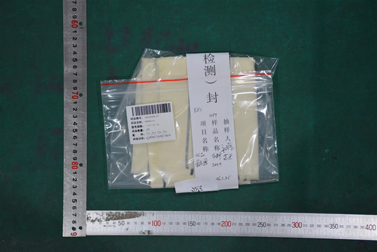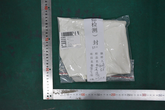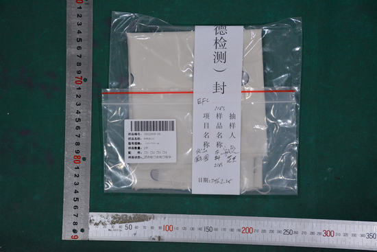⑦紡織品2059:數(shù)量2塊,在10卷抽樣基數(shù)上抽取,型號規(guī)格300×300(mm),生產日期/批號151222。