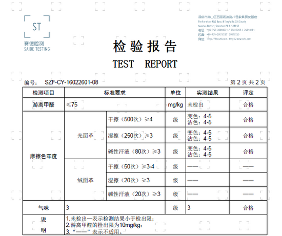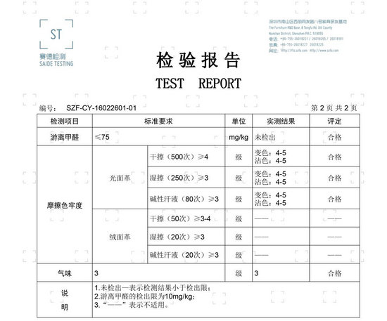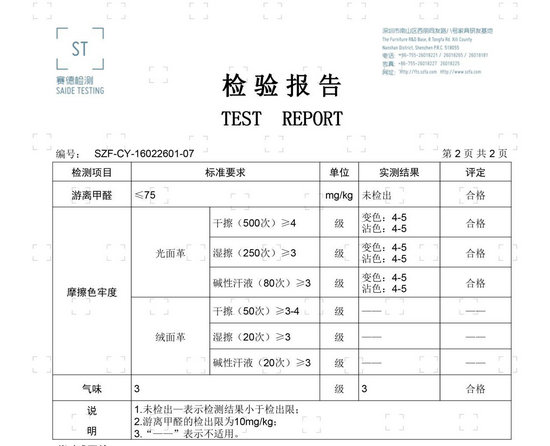 2016年2月,左右家私迎來第二輪關(guān)鍵原材料的抽檢工作,本次賽德檢測(cè)共抽樣5款皮革面料、2款紡織品面料、1款膠合板,針對(duì)理化性能及環(huán)保性能進(jìn)行全面檢測(cè),抽檢結(jié)果合格率達(dá)到100%。