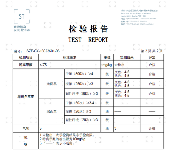⑧真皮(國(guó)際):游離甲醛、摩擦色牢度、氣味。
