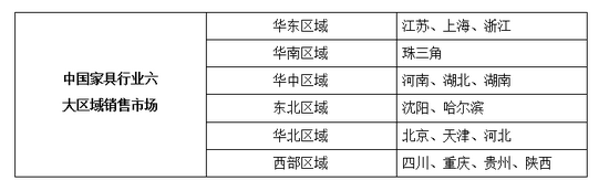 隨著家具產(chǎn)業(yè)業(yè)態(tài)集群化出現(xiàn),家具消費(fèi)市場(chǎng)也呈現(xiàn)出了相應(yīng)的區(qū)域化特征,目前我國(guó)家具業(yè)呈現(xiàn)出了六大區(qū)域銷售市場(chǎng),它們分別是以蘇州為中心的華東區(qū)域市場(chǎng),以廣州和深圳為中心的華南銷售市場(chǎng),以武漢、鄭州為中心的中原市場(chǎng),以北京和香河為中心的華北市場(chǎng),以重慶、成都為中心的西南市場(chǎng)…