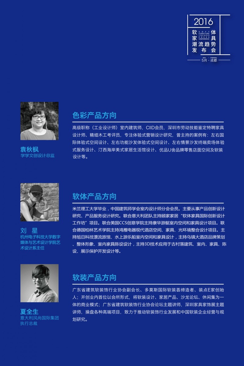 5月17日,2016軟體家具潮流趨勢發(fā)布會將在中國成都西部國際家具材料采購中心華麗啟幕,邀請三位由全球設計之都——米蘭歸來的重量級設計界嘉賓,分別從色彩趨勢、產品研發(fā)、軟裝配飾三個角度闡述國際潮流風向。
