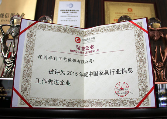 近日,2016年中國家具行業(yè)信息會(huì)在河北香河召開。會(huì)議介紹了中國家具行業(yè)信息工作方面的發(fā)展情況,解讀了國家“十三五”發(fā)展規(guī)劃、“中國制造2025”政策、中國經(jīng)濟(jì)走勢與制造業(yè)轉(zhuǎn)型趨勢,對2015年度中國家具行業(yè)信息工作“先進(jìn)協(xié)會(huì)”、“先進(jìn)企業(yè)”等進(jìn)行表彰。祥利集團(tuán)(深圳祥利工藝傢俬有限公司)被評為2015年度中國家具行業(yè)信息工作先進(jìn)企業(yè)。