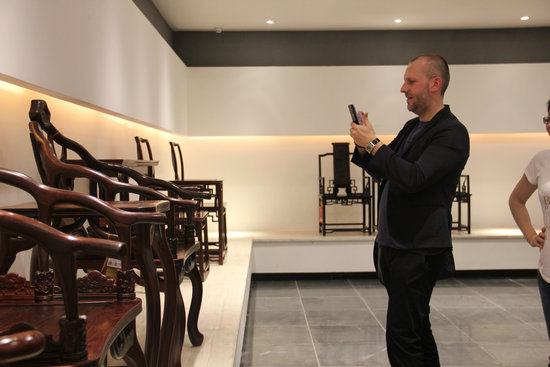 GianLuca Montali 參觀深圳紅木家具博物館手工坊