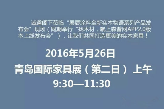展辰涂料【全新實(shí)木物語】產(chǎn)品發(fā)布——5月26日,青島見!