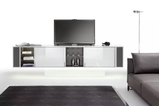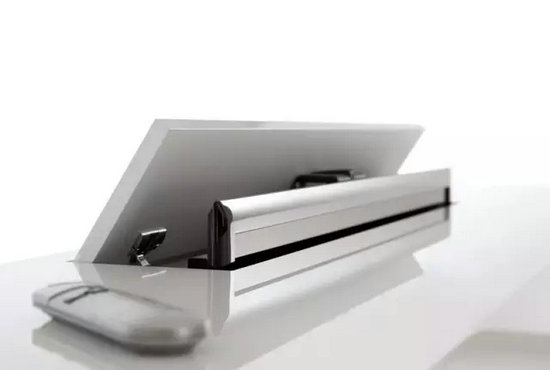 對(duì)開(kāi)間的小戶型居室,很難保持其各個(gè)空間的整潔有序和風(fēng)格統(tǒng)一。將電視隱藏起來(lái)是個(gè)好主意,Minilift電動(dòng)升降五金可以使電視從柜內(nèi)豎直升起,柜的空間也得到了更多利用。