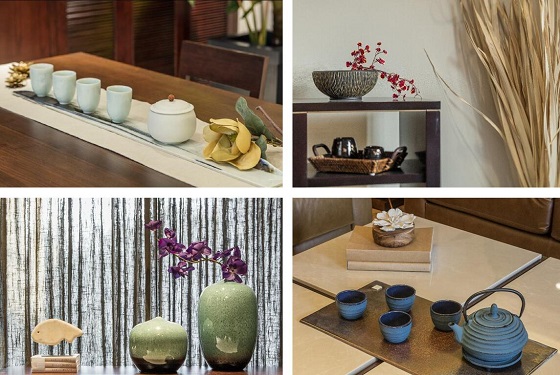 Tao軟裝設計師將美麗的心情和對生活的愛,傾注在飾品的搭配中,茶壺、花瓶、掛畫、擺件……為別墅增添了無數(shù)精致、時尚的東方風景。