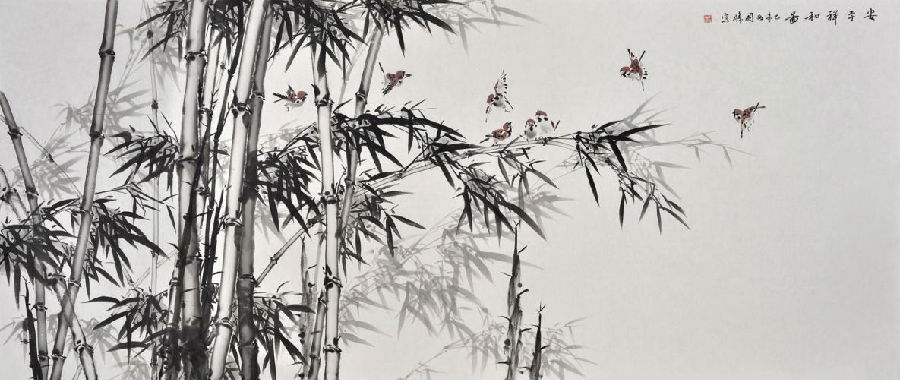 竹,有著不一般的中國(guó)傳統(tǒng)文化含義,竹子四季常青象征著頑強(qiáng)的生命、青春永駐;竹子空心代表虛懷若谷的品格;其枝彎而不折,是柔中有剛的做人原則;生而有節(jié)、竹節(jié)必露則是高風(fēng)亮節(jié)的象征。竹的挺拔灑脫、正直清高、清秀俊逸也是中國(guó)文人的人格追求。在國(guó)畫(huà)中,竹與梅花、喜鵲畫(huà)在一起,有愛(ài)情長(zhǎng)久、幸福美滿的美好的寓意。所以這幅李國(guó)勝的《安平祥和圖》特別適合掛在夫妻臥室。
