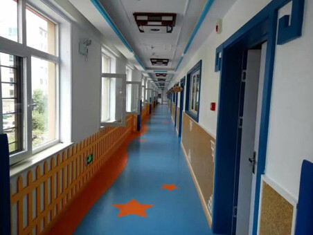 采用麥秸板裝飾的莊河市辰光啟智幼兒園走廊
