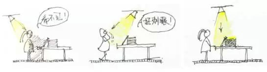 圖:燈具的安裝位置和打光方式不對(duì),會(huì)由于眩光或者陰影緣故帶來(lái)反效果。