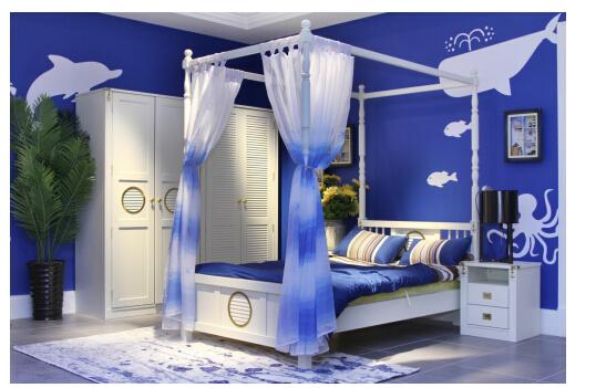 孩子對(duì)于未知擁有無(wú)窮的好奇心,希望像著童話里的主人公一樣,展開(kāi)一場(chǎng)冒險(xiǎn)。百?gòu)?qiáng)哈利木屋“航海系列”整體風(fēng)格由海洋、航行等元素組成——隨風(fēng)搖曳的巨大船帆、主管航向的木質(zhì)船舵、蔚藍(lán)的大海、復(fù)古的船緣、明媚的陽(yáng)光、銹色的船錨……在色彩上選擇淺色調(diào),藍(lán)白色令空間夢(mèng)幻感十足。其中兒童床設(shè)計(jì)成了帆船造型,床頭是“帆船”的船舵,到了夜晚,“小船長(zhǎng)”能夠在酣夢(mèng)中乘著他的冒險(xiǎn)號(hào)航行世界。