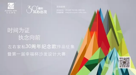2016年,為了紀(jì)念左右家私走過的三十年風(fēng)雨歷程以及取得的輝煌成績,同時答謝公司合作伙伴的多年支持,以及借此契機(jī)推動與合作伙伴進(jìn)一步深入合作,特舉辦左右家私三十周年紀(jì)念款作品征集暨第一屆“幸福杯”沙發(fā)設(shè)計大賽,面向社會各界設(shè)計師公開征選家具設(shè)計作品。
