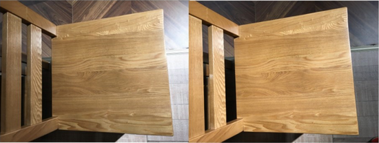 圖示:同樣的椅子在顯指 Ra 80和Ra90 的不同表現(xiàn),高顯的燈光還原物品真實的色彩。