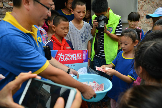 愛心天使團現(xiàn)場獻出自己的一份愛心