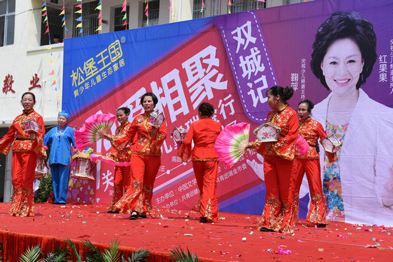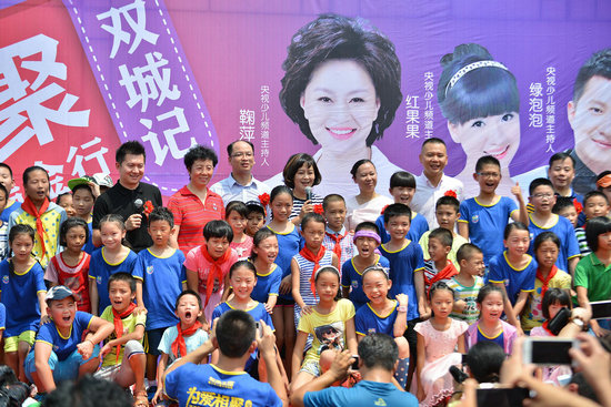 核心提示:8月8日,由松堡王國攜手中國文學藝術(shù)基金會舉辦的“為愛相聚?雙城記”關(guān)愛留守兒童瑞金行歡迎儀式在瑞金市九堡鎮(zhèn)清溪小學舉行。瑞金市委副書記吳虹、中國文學藝術(shù)基金會主任尚玉香、松堡王國董事長郭向陽等領(lǐng)導嘉賓代表出席儀式,鞠萍姐姐、綠泡泡作為明星公益大使蒞臨捐贈儀式。