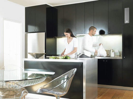 Audio System音響和Opalum音箱都可以安裝到櫥柜中,操作臺中甚至掛在墻壁角上,沒有占地空間的煩惱;鋼化玻璃表面和觸控按鈕的設(shè)計,可謂人性化至極,沒有安全隱患還能保持音響的外形美觀、堅固。