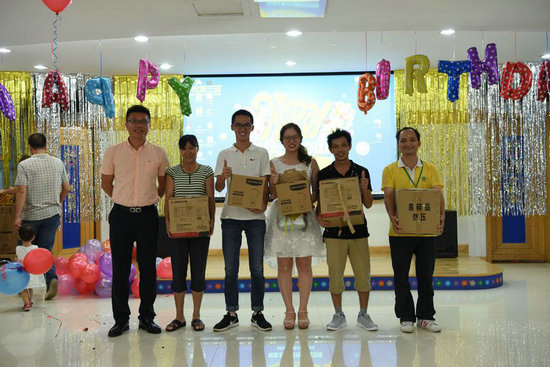 品質(zhì)總監(jiān)郭武浩為大獎壽星頒獎