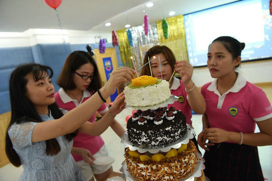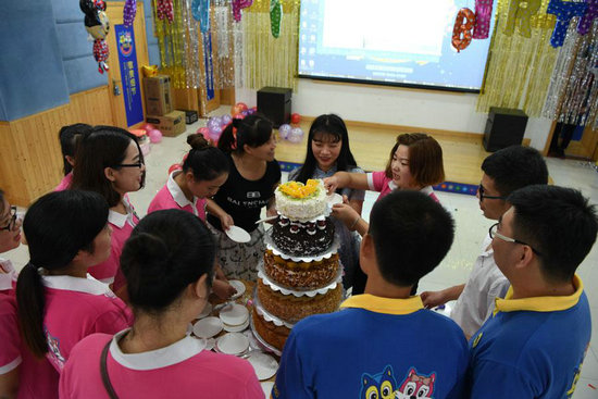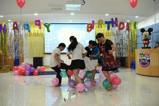 五彩繽紛的氣球,點綴著生日的氣氛。溫馨的生日會現(xiàn)場布置,慰勞壽星們那一顆思鄉(xiāng)的心。精心準(zhǔn)備的這一切雖然只是小小的舉動,卻傾注了松堡王國對壽星們的親切關(guān)懷。