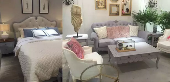 Pantone發(fā)布的2016年度流行色是寧?kù)o藍(lán)(Serenity)和粉水晶(Rose Quartz)這一對(duì)雙生色,在秋季東莞展上:皇家典藏、瑞拉斯、艾斯維爾、展博、榕大等數(shù)十個(gè)品牌迅速跟上潮流的步伐,不約而同地推出了用低飽和度、柔和的寧?kù)o藍(lán)、粉水晶色面料搭配或深或淺的木紋作為主打產(chǎn)品,使原本大體量的歐美家具散發(fā)出了“小清新”的味道。