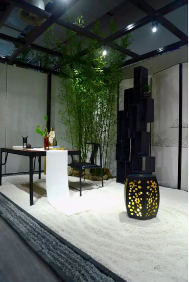 在本次的摩登時(shí)尚家居展位上,自在工坊通過(guò)園林造景的表現(xiàn)形式將人文與自然結(jié)合,將一份雅致的山水呈現(xiàn)于世。